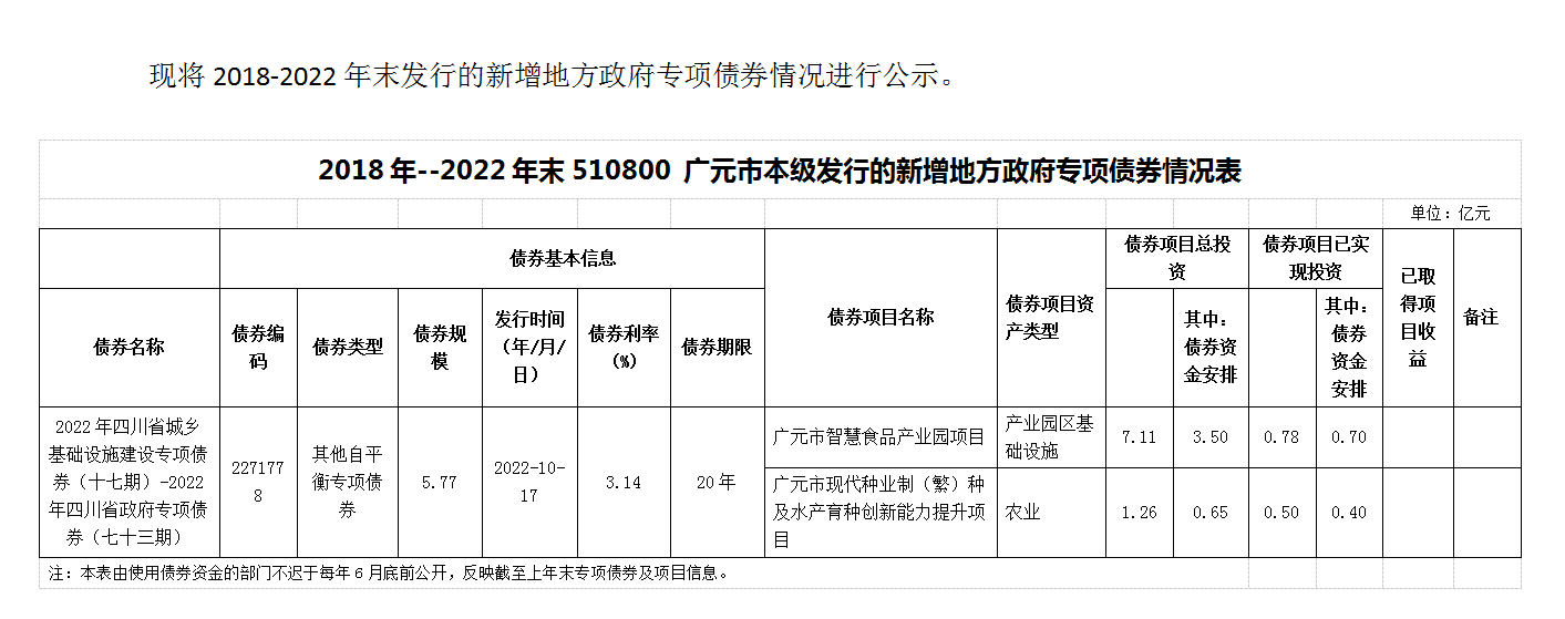广元市农业发展集团有限公司 关于2018-2022年末债券信息公开的公示